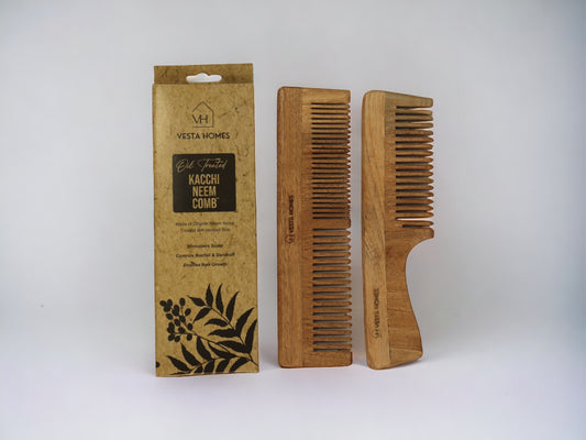 Veda Neem Wood Dual, Wide Tooth Comb | Set of 2