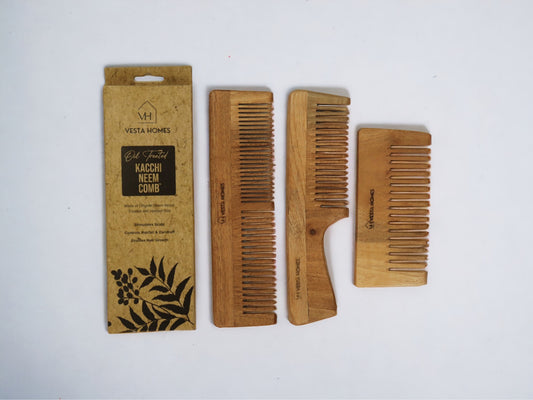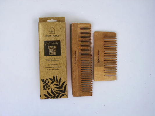Veda Neem Wood Dual Tooth, Small Wide Tooth Comb | Set of 2
