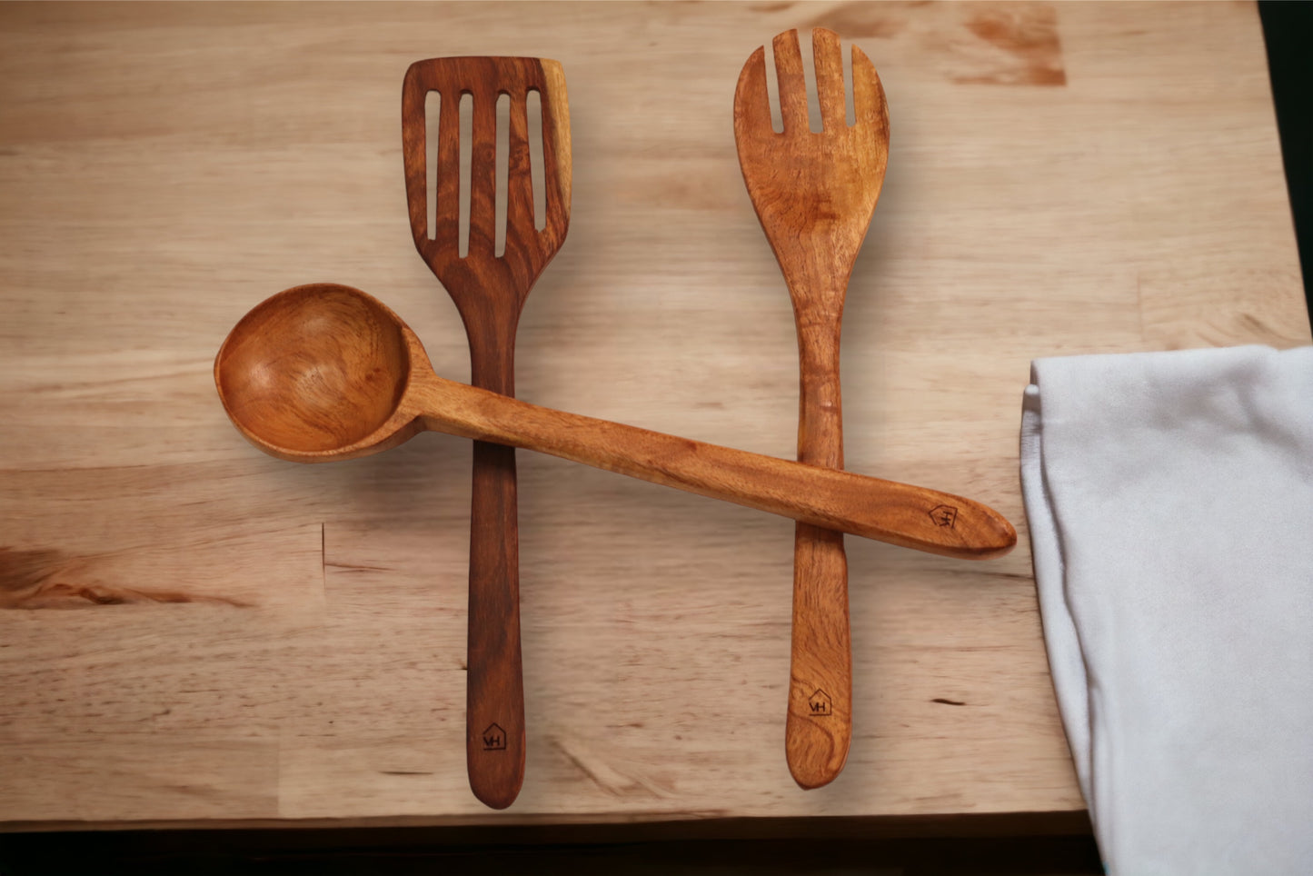 Neem Wood Kitchen Cooking Spoons Set of 3